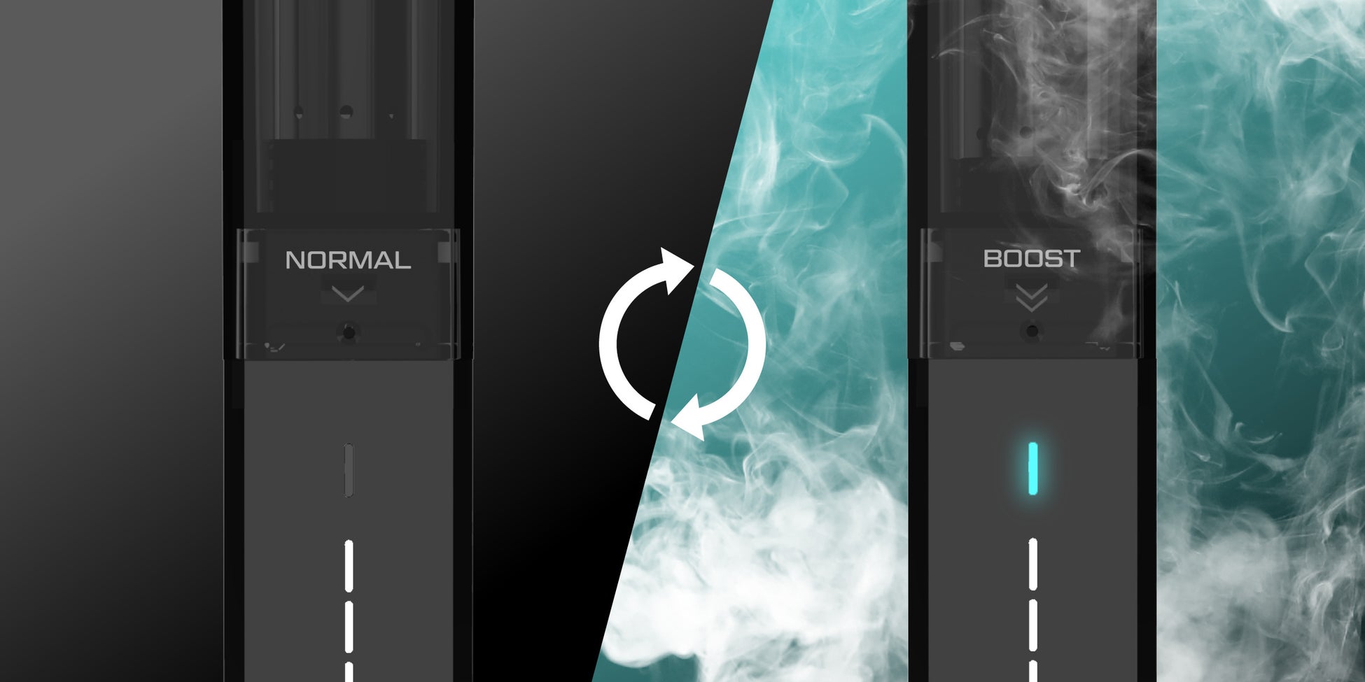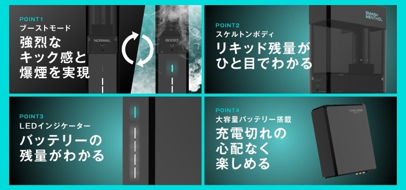 また、カートリッジの装着方向によって、切り替えられる「BOOSTモード」を搭載。通常の吸引(ノーマルモード)でも、旧モデルを上回る濃厚さですが、BOOSTモードでは一気に出力を高め、“重厚な煙の質感”と“深いコク”を演出します。まるで一口ごとにリキッドが新鮮に生まれ変わるような感覚を目指し、味・香り・煙量のすべてを再設計しました。