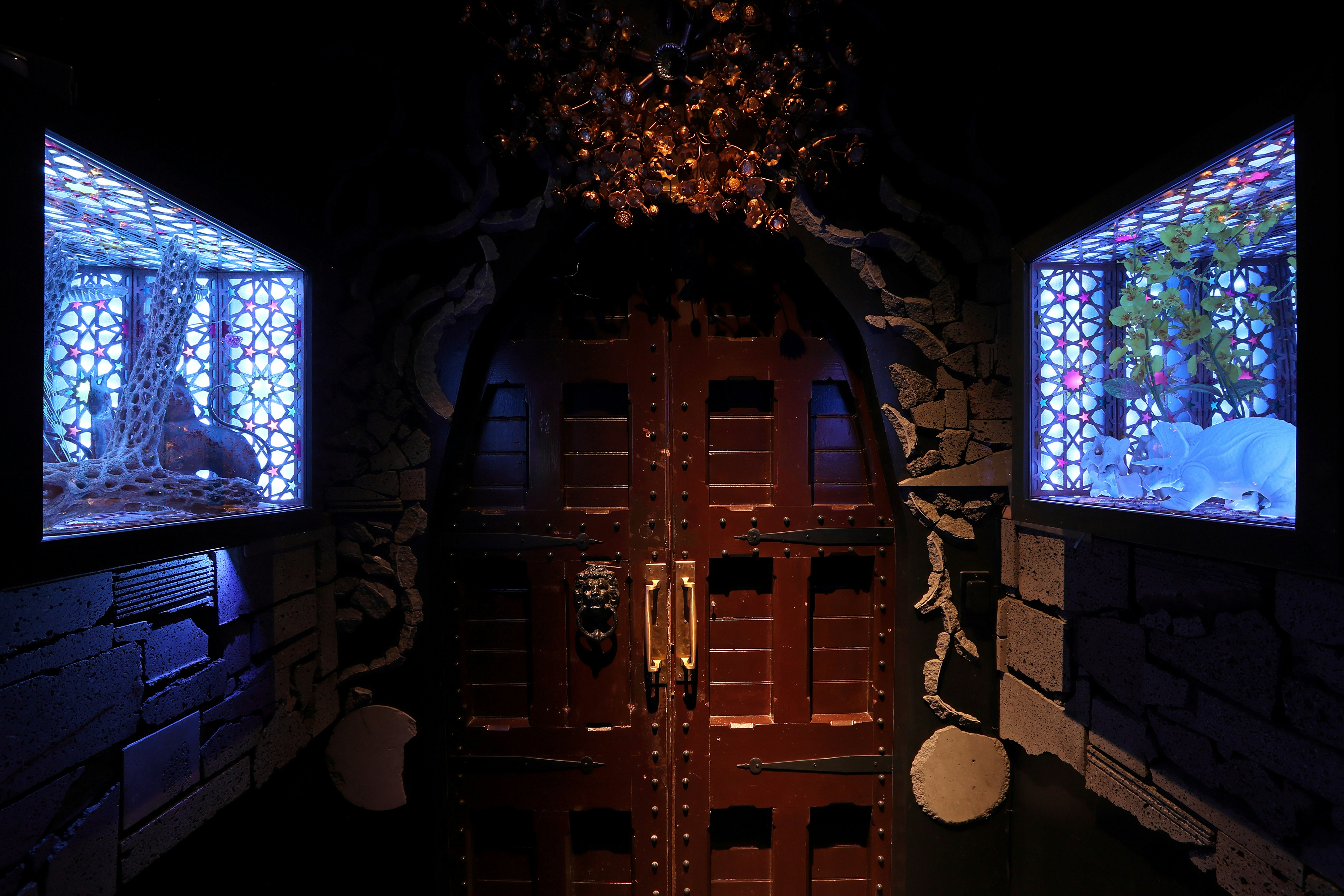 麻布エリアとはまた違う遊び心を加えた内装のテーマは「秘境」。 ジャングルに迷いこんだような演出をカラオケ付き個室でも楽しめます。
